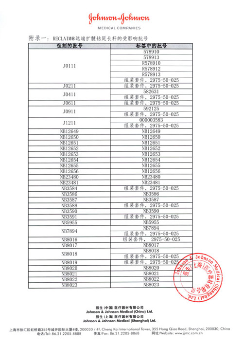 2014年10月24日收到强生(上海)医疗器材有限公司报告,该公司代理的髋关节手术工具(注册证号:国食药监械(进)字2014第1100752号)由于收到多份翼片断裂的投诉报告等原因,其生产商爱尔兰DePuy(Ireland)公司对该产品进行主动召回。该公司称此次召回产品未在中国销售。请各省、自治区、直辖市食品药品监督管理局加强对此类产品的监督管理。