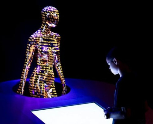 图为国家自然历史博物馆里的人类基因组展览