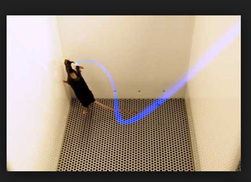 通过植入纤维或在大脑中产生光敏分子等光遗传学手段改造的小鼠,这是斯坦福大学发明的技术。