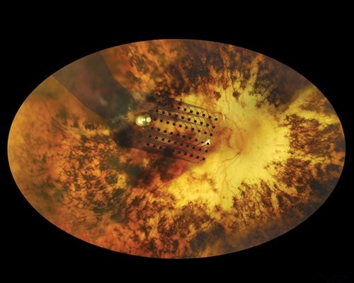 图为放置在视网膜上的电极