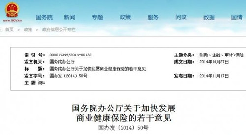11月17日,国务院发布《关于加快发展商业健康保险的若干意见》,文件提出: